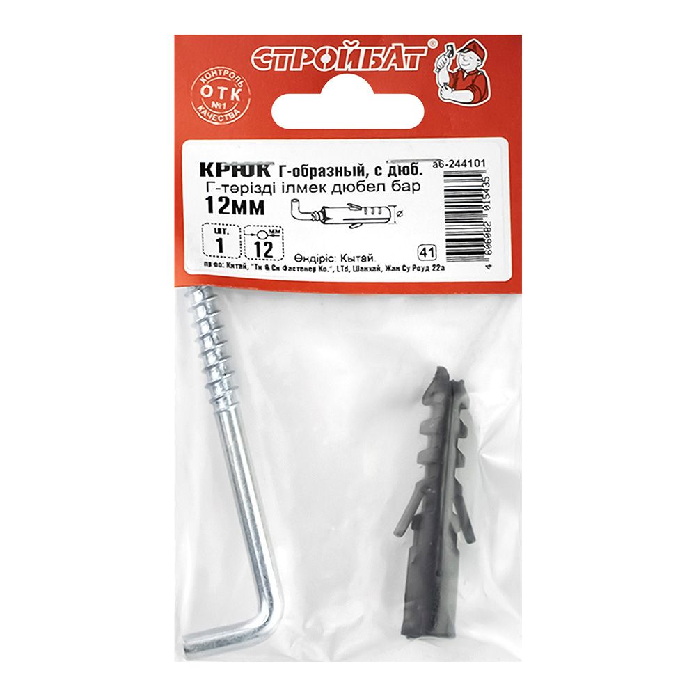 Крюк Г-образный с дюбелем 12 мм 1 шт