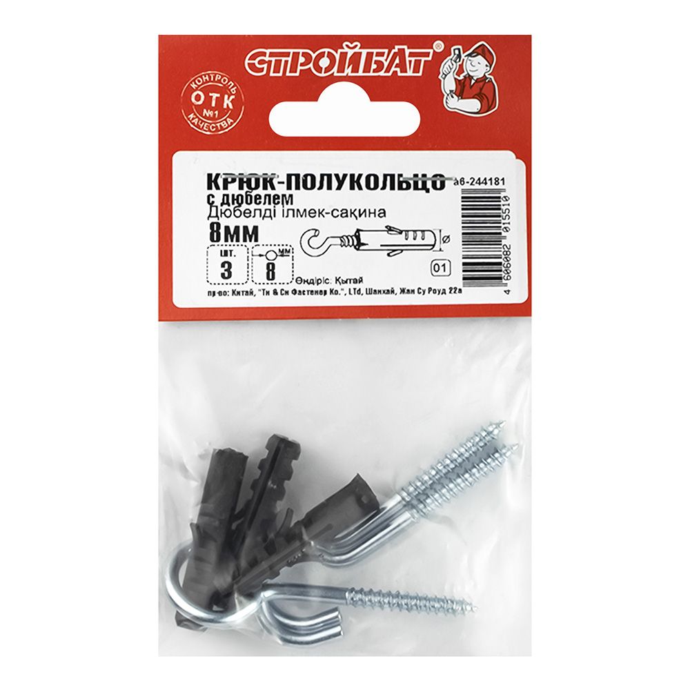 Крюк-полукольцо с дюбелем 8 мм 3 шт