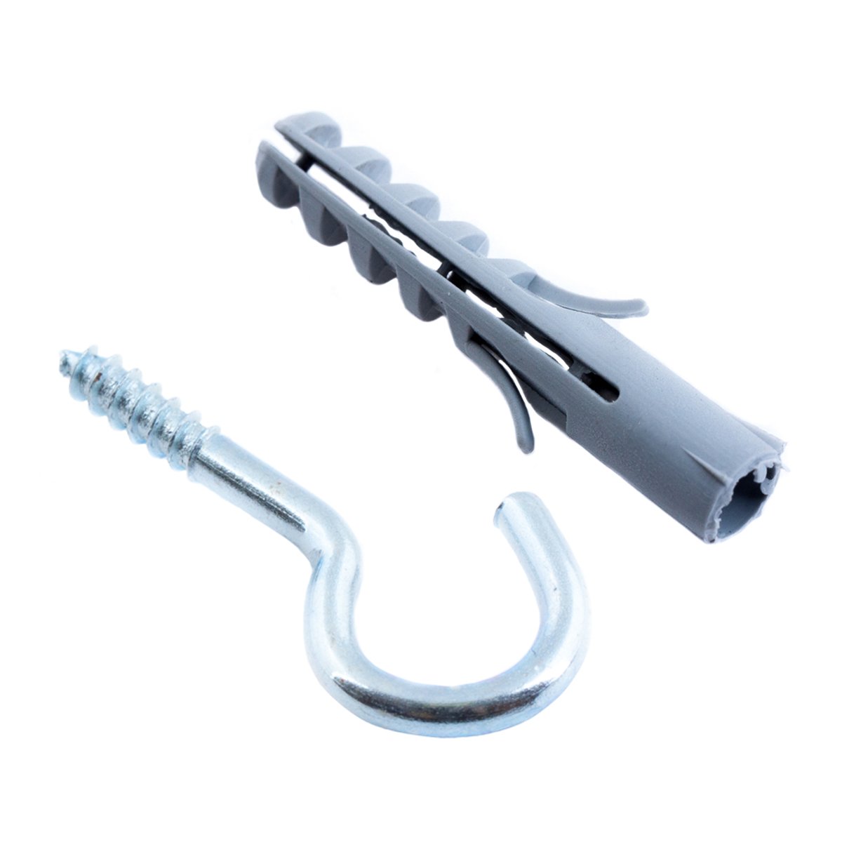 Крюк-полукольцо с дюбелем 8 мм — удобный и практичный крепёж для подвешивания предметов в бетоне, кирпиче и других твёрдых основаниях. Простой монтаж, надёжная фиксация — идеален для дома, гаража и мастерской.