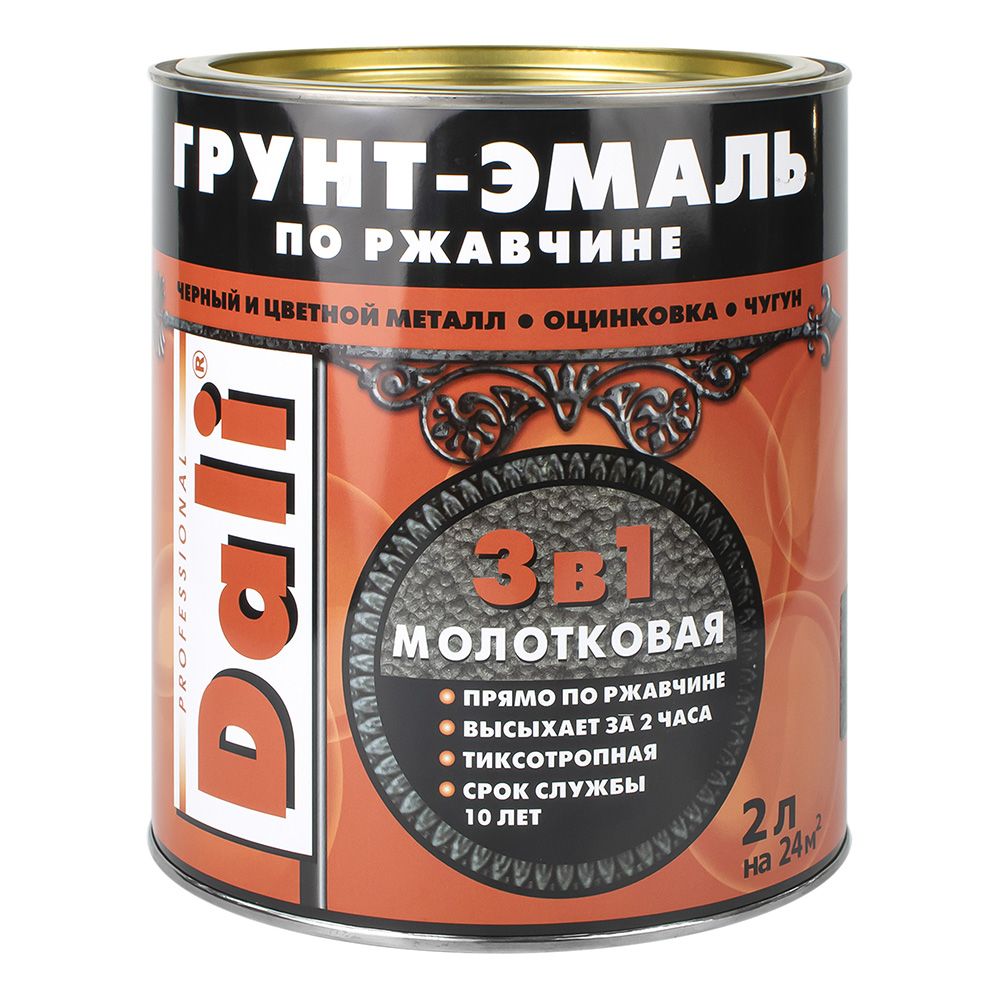 Грунт-эмаль по ржавчине Dali молотковая черная 2 л