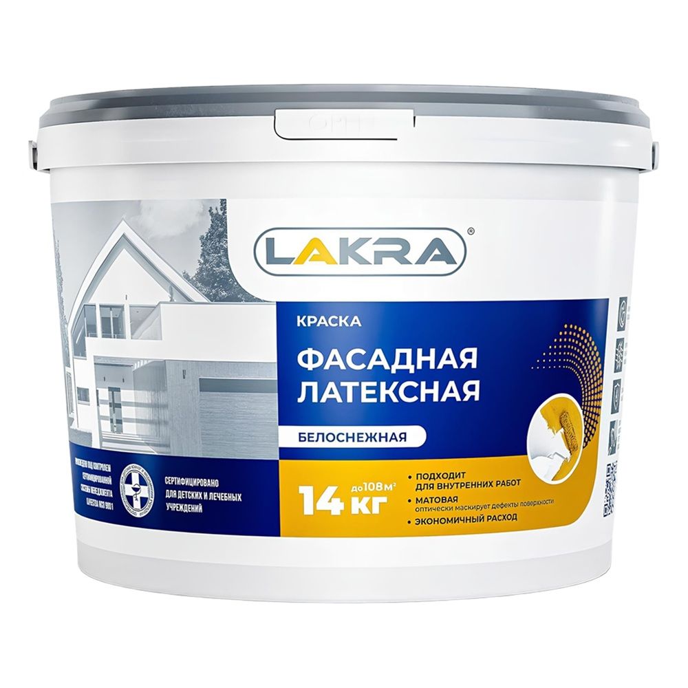 Краска ВД латексная фасадная Лакра, белая, 14 кг