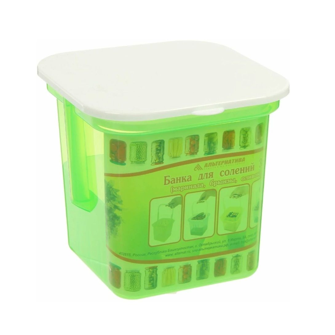 Банка для солений Альтернатива 3 л — идеальна для квашения капусты, засолки овощей и домашних заготовок. Прочный материал и удобная крышка сохраняют свежесть продуктов.