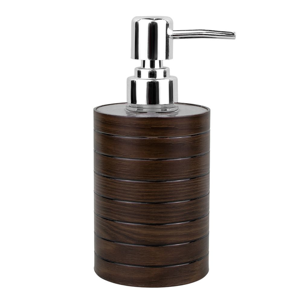 Дозатор для жидкого мыла "Wood" в насыщенном коричневом цвете с имитацией дерева — это функциональный аксессуар, который вносит природное спокойствие и уют в интерьер ванной комнаты. Выполнен из влагостойкого материала с фактурной поверхностью, напоминающей натуральное дерево, он смотрится тепло и стильно. Удобная помпа надёжно дозирует жидкое мыло, гель или лосьон, а сам дозатор легко разбирается и очищается. Натуральные цвета способствуют созданию расслабляющей атмосферы в пространстве. Идеально сочетается с другими элементами серии "Wood", формируя целостную композицию. Превратите ежедневные ритуалы в удовольствие с аксессуарами, вдохновлёнными природой.