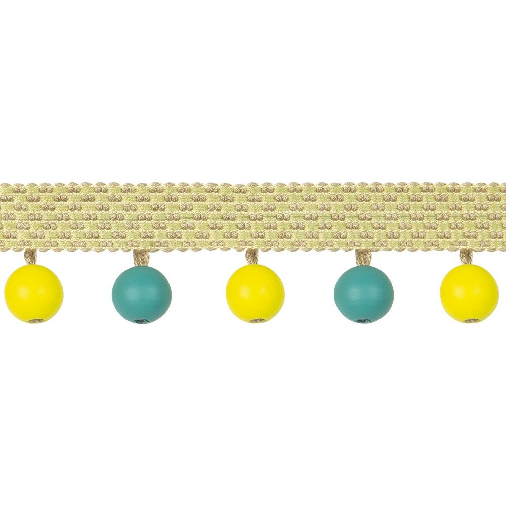 Бахрома для штор с деревянными шариками лимонный/темно-бирюзовый