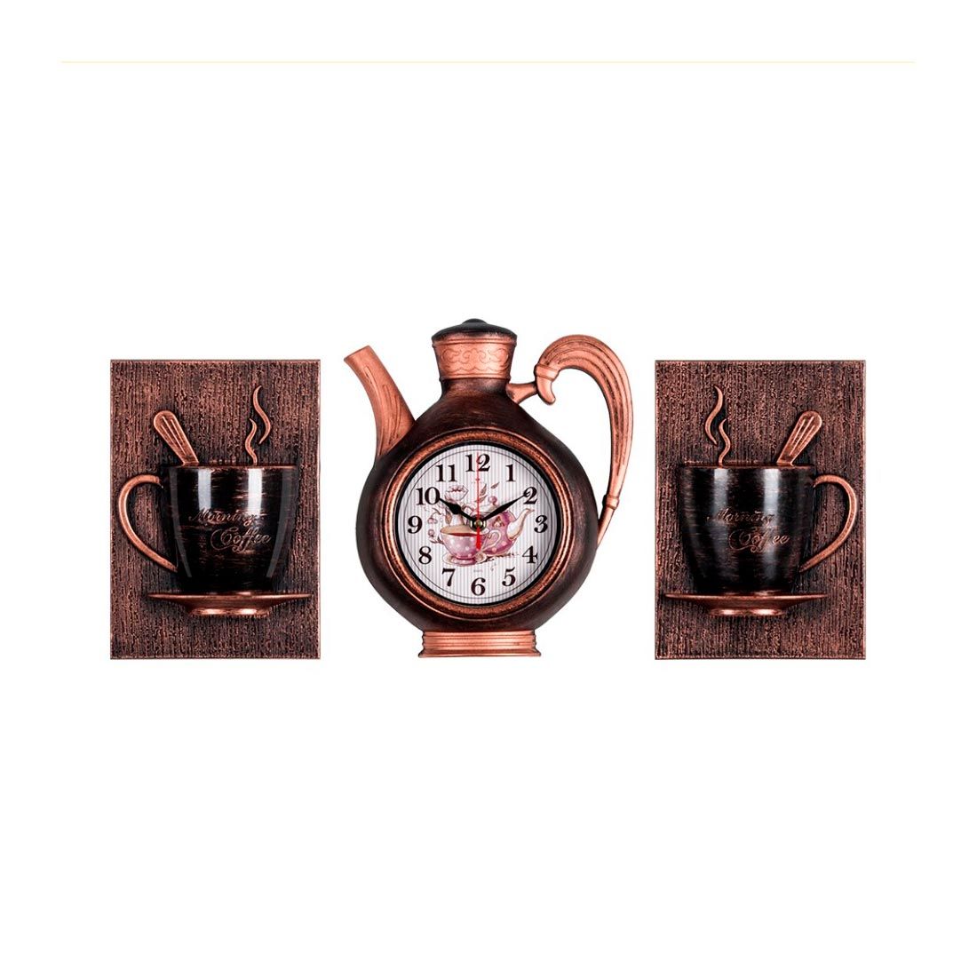 Часы настенные Joy Чайник 26,5х24 см корпус черный с медью, 2 чашки 2622+2-005