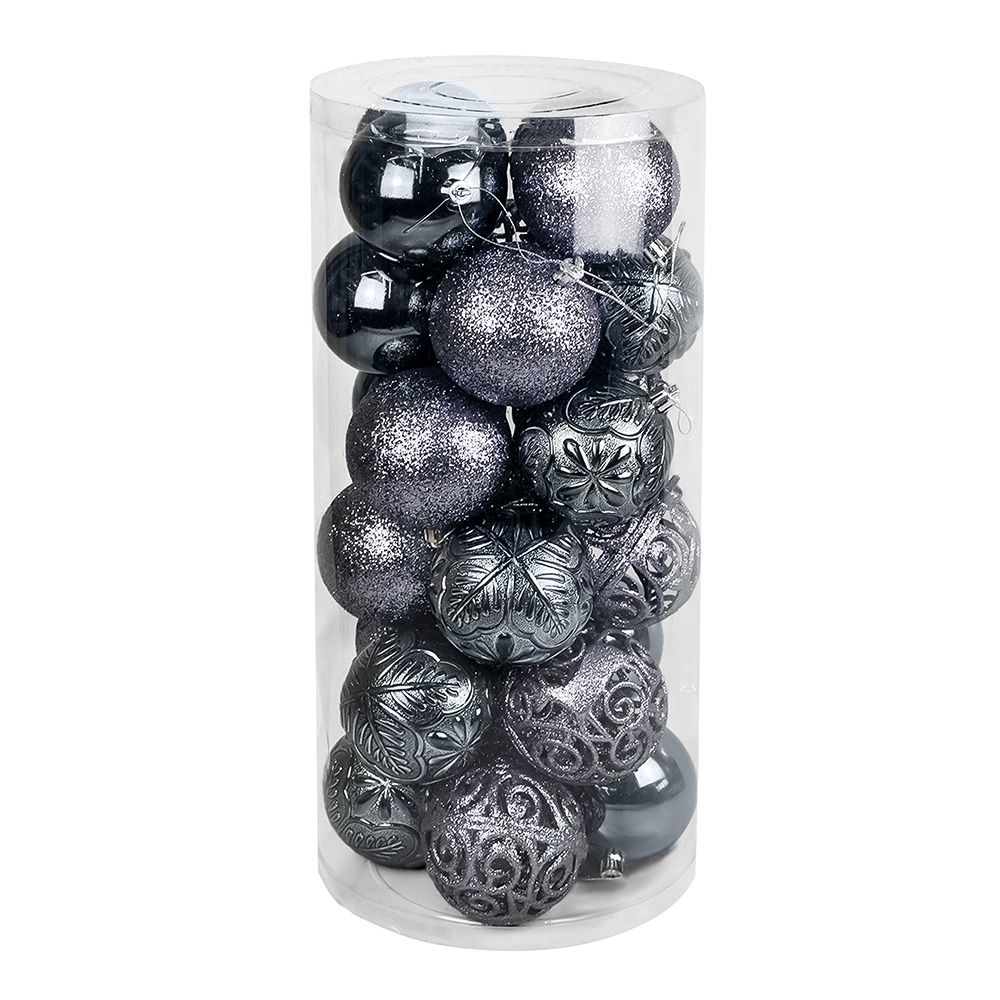 Новогодние шары 8 см (набор 24 шт) "Фактурный микс", графит