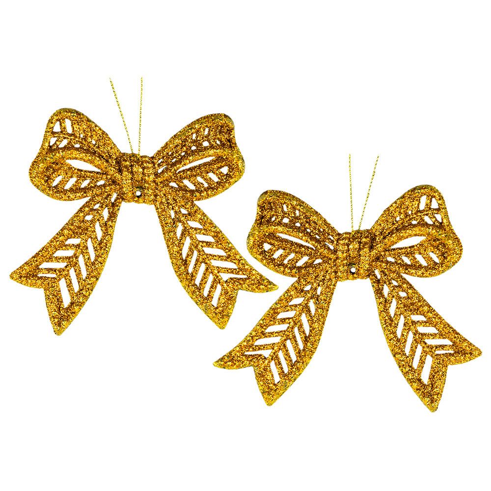Подвеска в блесках Сказочные бантики 9х11 см золото 2 шт