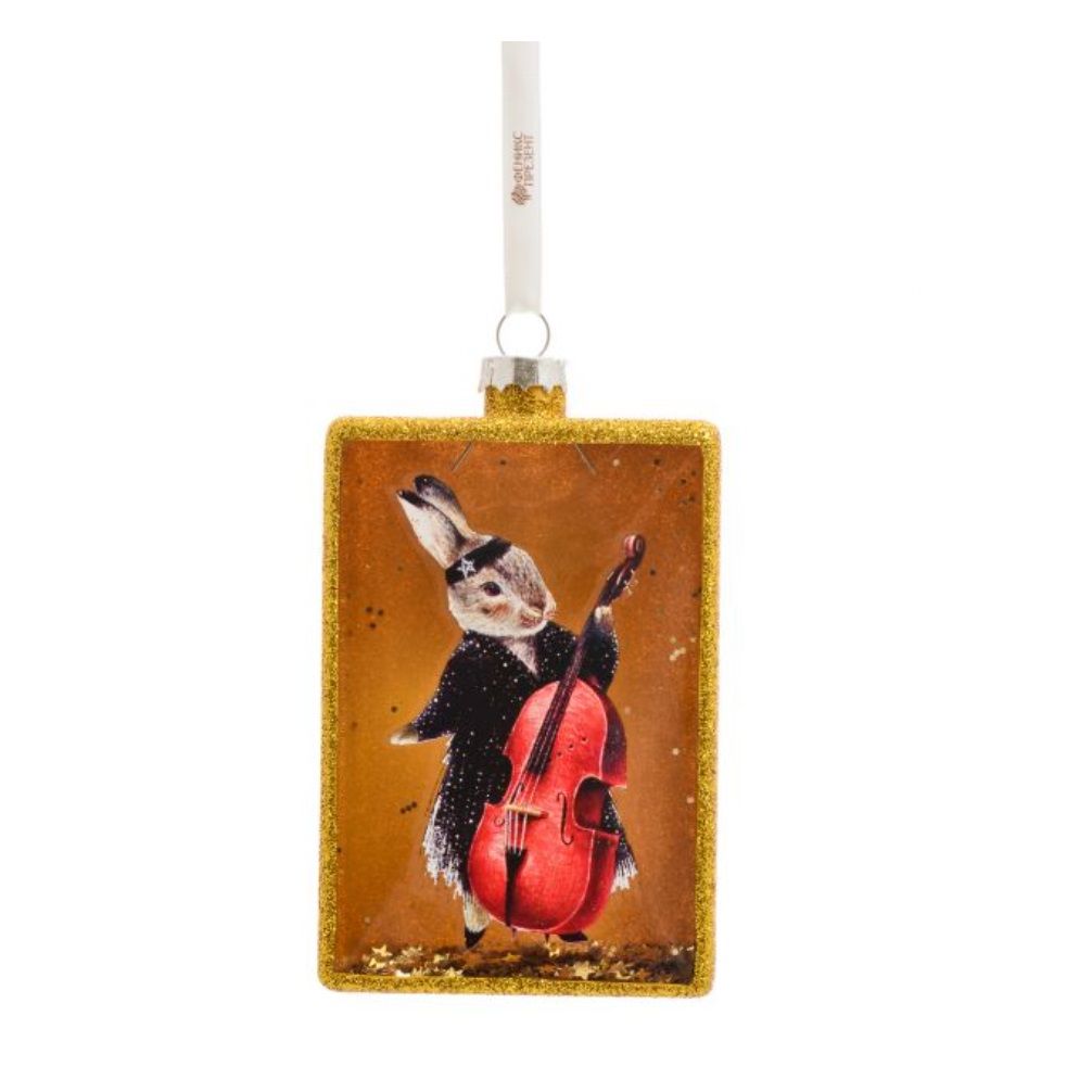 Украшение новогоднее подвесное Джазовый Зайчик в золоте из стекла c наполнен из ПЭТ 2,5x6,6x11,4см