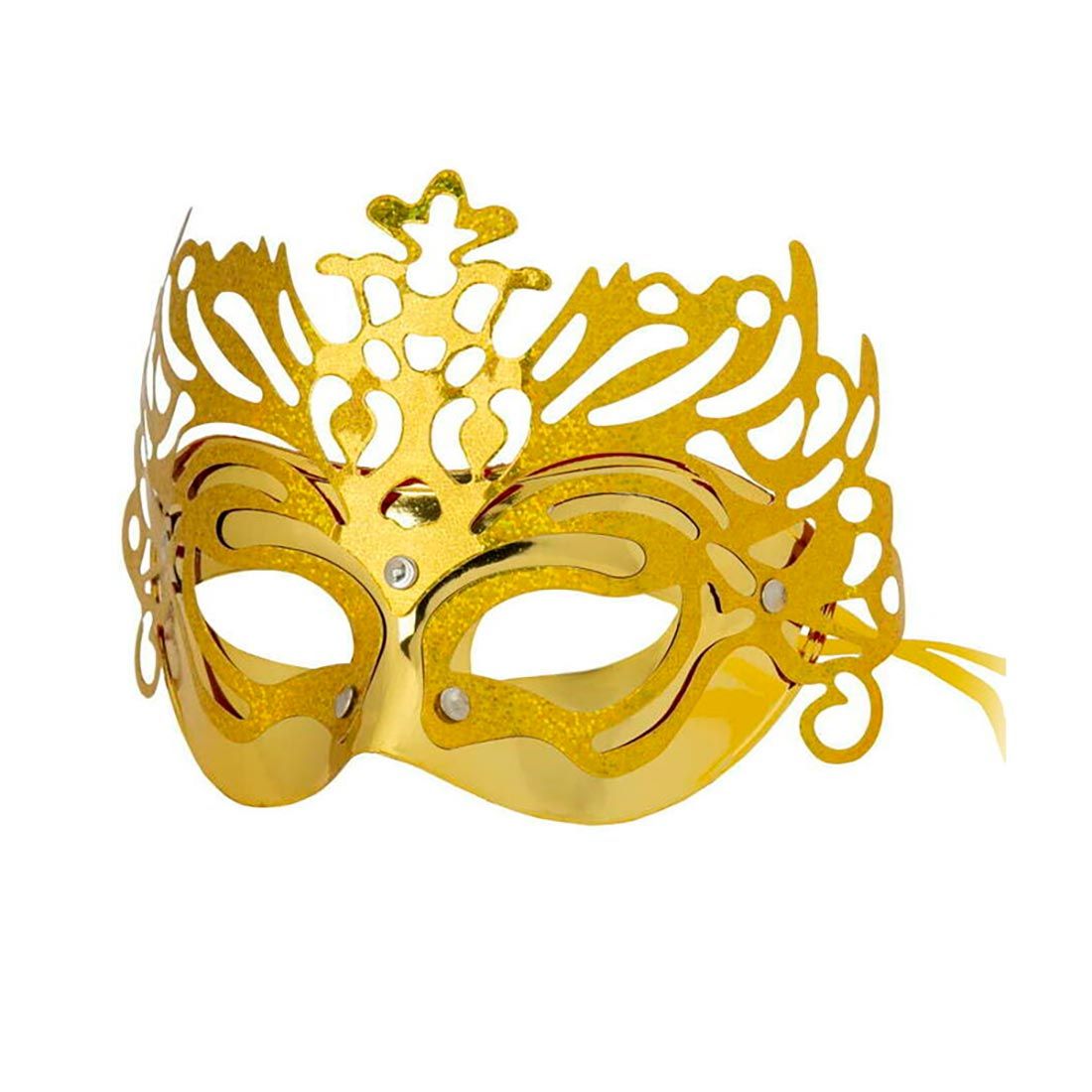 Маска маскарадная Золотая ажурная из полипропилена, с лентой для крепления на голове 19,5x14x10см