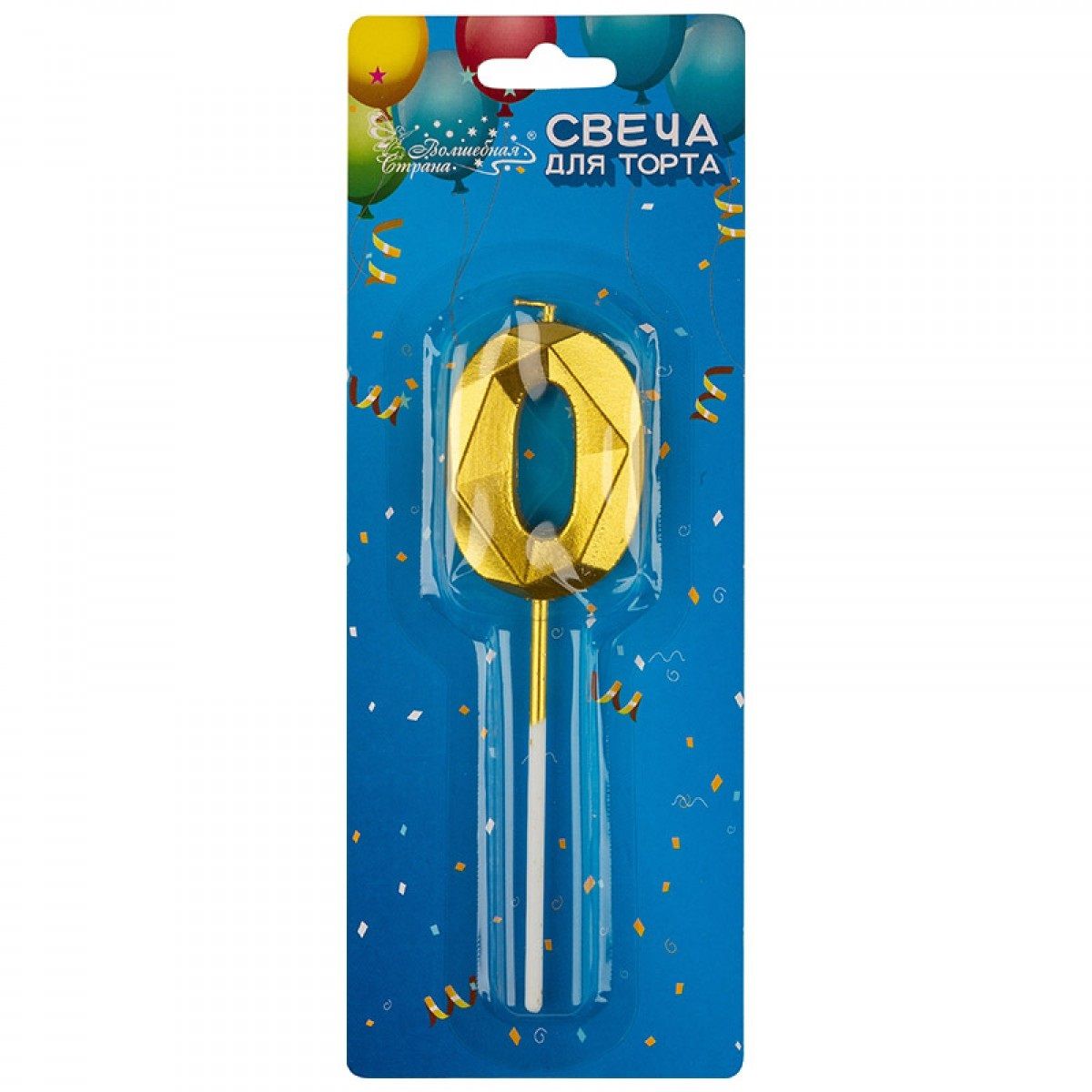 Свеча для торта Цифра 0 золото Волшебная страна