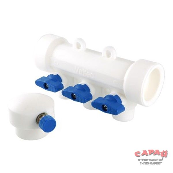 Коллектор полипропилен 40х20 мм 3 выхода с кранами Valtec
