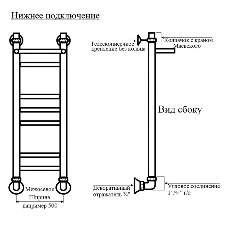 Полотенцесушитель водяной М-образный ПСВ-44-02 50х50 см 3/4"