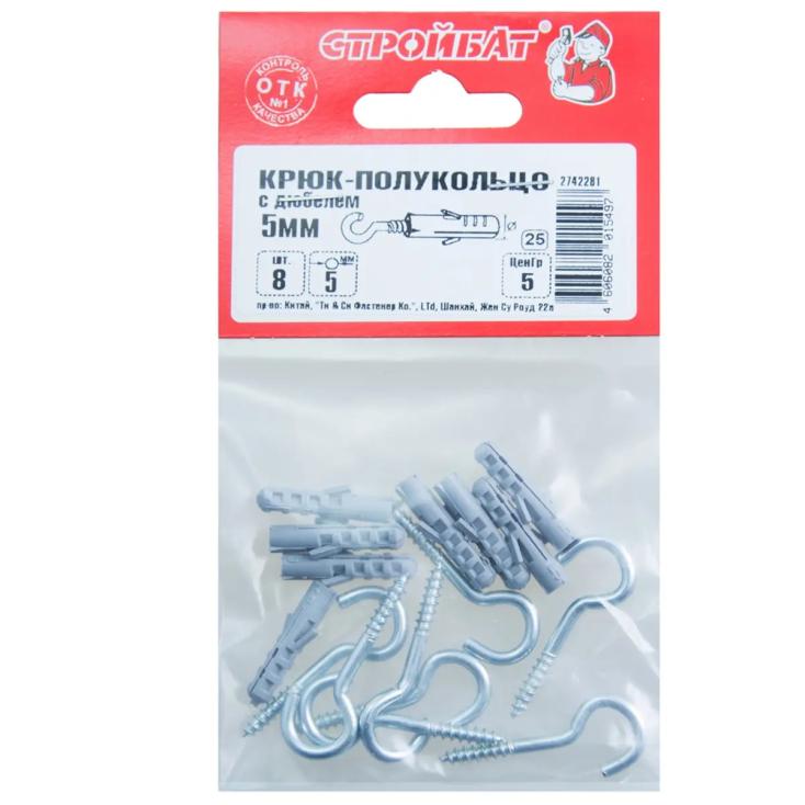 Крюк-полукольцо с дюбелем 5 мм 8 шт