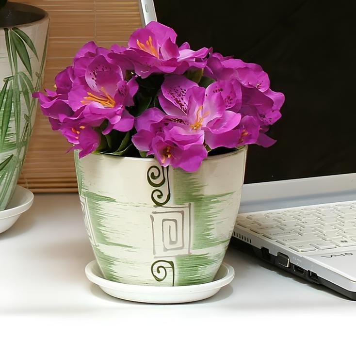 Горшок цветочный Бутон Бамбук роспись 12 см 0,9 л