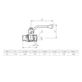 Кран шаровой 1 1/2" ВР/НР рычаг Стандарт 221 11б27п1 Галлоп 103194
