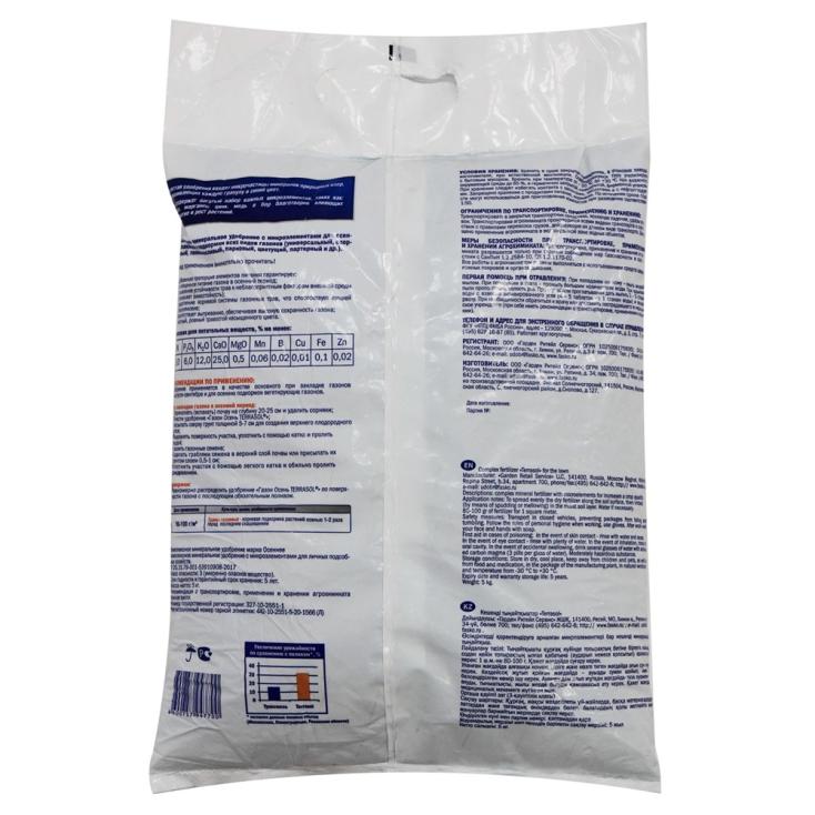 Удобрение для газона минеральное гранулированное тукосмесь TerraSol газон Осень 5 кг