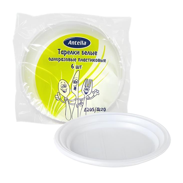 Набор тарелок одноразовых пластиковых мелких Антелла белые 6 шт 220 мм