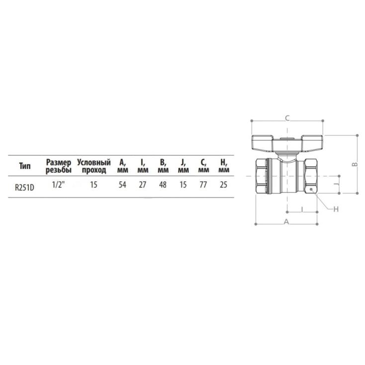 Кран шаровой 1/2" ВР/ВР бабочка 11б27п1 Стандарт 230 Галлоп 107163