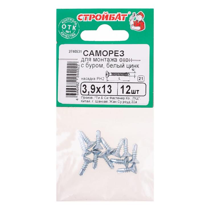 Саморез для монтажа окон 3,9х13 мм белый цинк с буром 12 шт