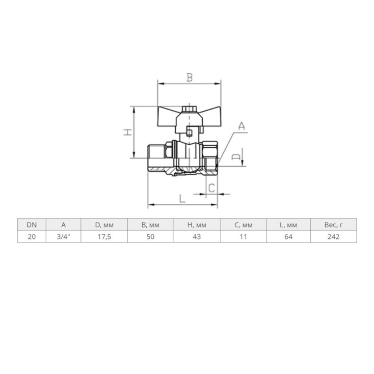 Кран шаровой 3/4" ВР/НР бабочка 11б27п1 Стандарт 231 Галлоп 107188