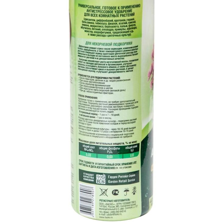 Бывает, что растения, как и люди, переживают стресс: пересадка, резкое изменение температуры, сухой воздух, нехватка света — всё это влияет на их здоровье и внешний вид. Удобрение-спрей Антистресс от Фаско — это быстрая помощь для комнатных растений в трудные моменты. Минеральный комплекс в удобной форме спрея проникает в ткани растения через листья и запускает процессы восстановления. Уже после первых обработок заметно улучшается внешний вид: листья становятся упругими, насыщенно-зелёными, появляется блеск и жизненная сила. Средство содержит микроэлементы, укрепляющие иммунитет, ускоряющие фотосинтез и стимулирующие рост даже в неблагоприятных условиях. Преимущество этого спрея — удобство применения: просто встряхните флакон и равномерно распылите состав на листву. Нет необходимости разводить, отмерять дозировку — уход стал проще и приятнее. Удобрение подходит для большинства популярных комнатных растений: фикусы, драцены, орхидеи, пальмы, пеларгонии, декоративно-лиственные и цветущие виды. При регулярном применении удобрение не только устраняет последствия стресса, но и предотвращает их появление в будущем. Безопасная формула не вызывает ожогов и не оставляет следов на листве. Объёма в 405 мл достаточно для полноценного курса восстановления. Это отличный выбор для заботливых хозяев, которые хотят видеть свои растения здоровыми и цветущими. С Фаско Антистресс забота о зелёных любимцах становится лёгкой, а результат — заметным. Верните растениям силу и сияние — с каждым пшиком!