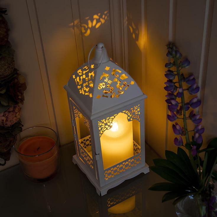Светильник кашпо ЛЮЧИЯ 815 Милано белое с воск LED свечой имитир пламя 12xh31см на 3xAAA