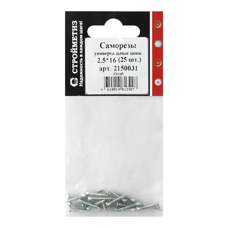 Саморез универсальный 2,5х16 мм белый цинк 25 шт