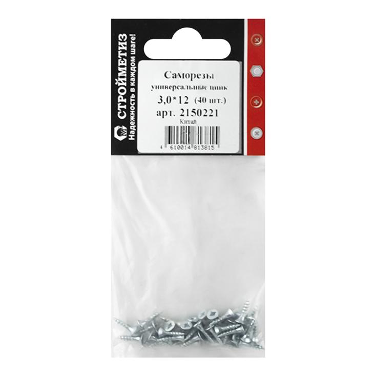 Саморез универсальный 3х12 мм белый цинк 40 шт