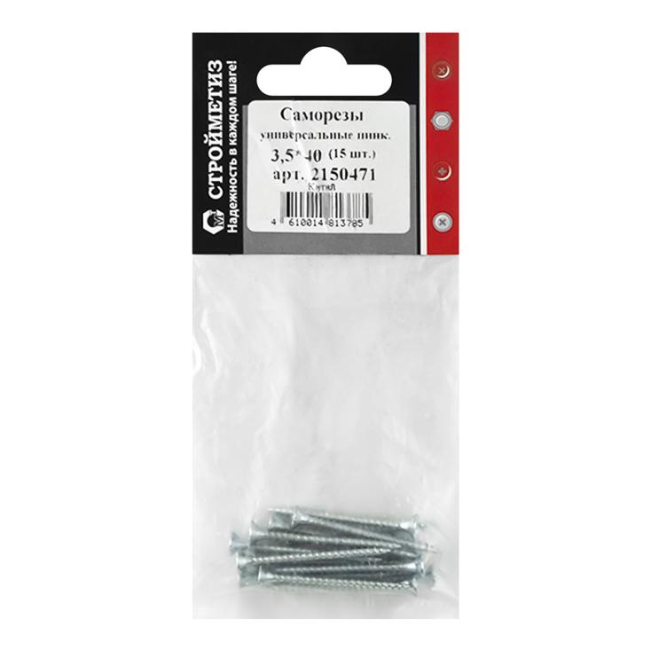 Саморез универсальный 3,5х40 мм белый цинк 15 шт