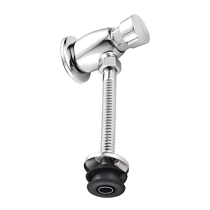 Кран для писсуара Frap F7201 с жесткой подводкой. Установка настенная. Тип кнопочный, на корпусе располагается кнопка, при ее нажатии вода будет течь время, которое задано производителем, а затем выключается самостоятельно. После нажатия на кнопку, сдвигается шток и запорная прокладка. Запорная прокладка перекрывает воду.
