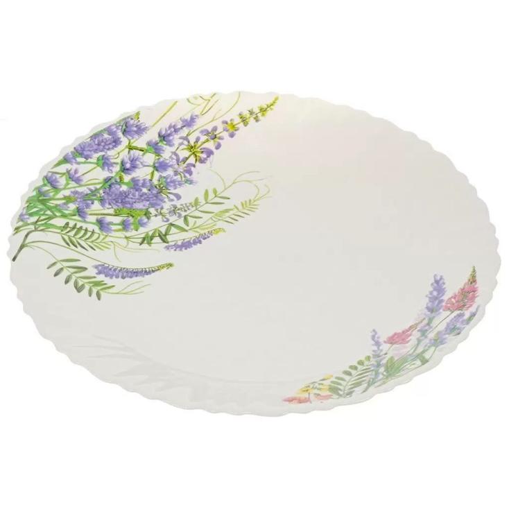 Обеденная тарелка Лаванда 24 см – нежный акцент для уютной сервировки. Рисунок с лавандовыми цветами создаёт атмосферу французского Прованса. Просторная поверхность удобна для подачи горячих блюд и закусок. Керамика высокого качества устойчива к царапинам, легко очищается. Можно использовать в микроволновке и посудомоечной машине. Прекрасное решение для создания романтичного стола!