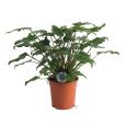 Филодендрон — это одно из самых популярных и стильных комнатных растений, которое привлекает внимание своими крупными, блестящими листьями, образующими красивую лиану. В горшке диаметром 21 см и высотой 100 см филодендрон выглядит как миниатюрное дерево с длинными гибкими побегами, которые могут свисать или карабкаться вверх, создавая эффектный зеленый каскад. Листья филодендрона имеют насыщенный зеленый цвет и крупную текстуру, что делает его одним из самых эффектных растений для интерьера. Это растение идеально подходит для гостиных, офисов, холлов и даже ванных комнат, где оно будет создавать атмосферу свежести и уюта. Филодендрон предпочитает мягкое, рассеянное освещение, и может расти в условиях полутени. Он хорошо чувствует себя как при ярком свете, так и при затенении, что делает его универсальным растением для различных помещений. Полив филодендрона следует проводить регулярно, однако важно избегать переувлажнения почвы, так как это может привести к загниванию корней. Также это растение активно очищает воздух, поглощая углекислый газ и выделяя кислород, что способствует улучшению качества воздуха в вашем доме. Филодендрон станет отличным выбором для тех, кто хочет добавить зелени и экзотики в интерьер, не тратя много времени на уход за растением.