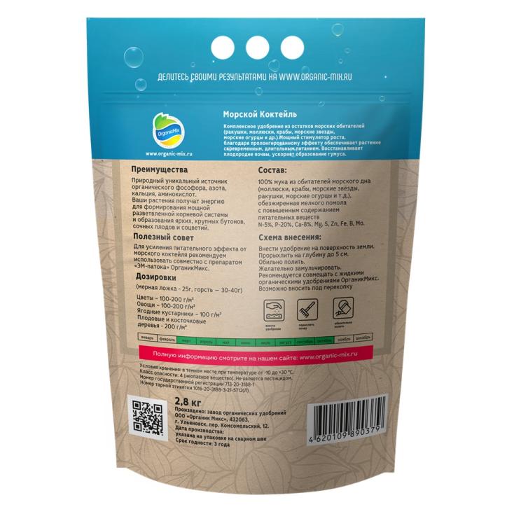 Удобрение Морской коктейль ОрганикМикс — это высокоэффективная органо-минеральная подкормка на основе морских водорослей, которая идеально подходит для всех видов растений. В составе — натуральные морские водоросли, аминокислоты, микроэлементы и фитогормоны, которые активируют рост корней, стимулируют цветение, плодоношение и увеличивают урожайность. Морской коктейль помогает растениям быстро адаптироваться к внешним стрессам, таким как засуха, перепады температуры и болезни. Удобрение улучшает структуру почвы, повышает её плодородие и помогает растениям лучше усваивать воду и питательные вещества. Препарат особенно полезен для овощей, фруктов, цветов и декоративных растений. Упаковка 2,8 кг позволяет использовать средство на больших участках, обеспечивая стабильное питание на протяжении всего сезона. С Морским коктейлем ваши растения будут не только здоровыми, но и плодотворными, приносящие стабильный и вкусный урожай, а также обладающие ярким и насыщенным цветением.