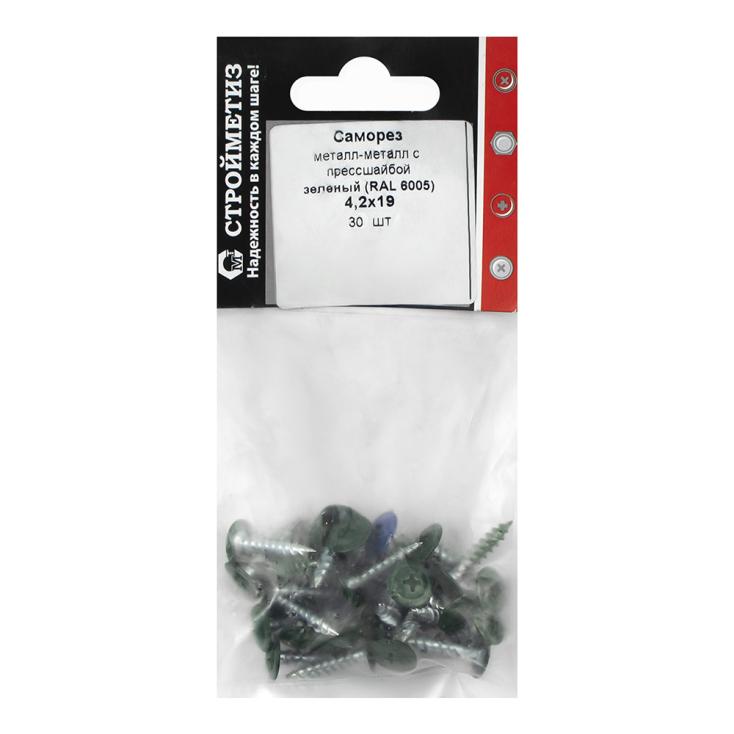 Саморез прессшайба 4,2х19 мм острый RAL 6005 30 шт
