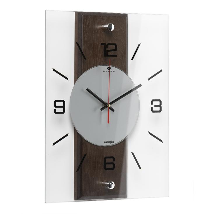 2938-002 (5) Часы настенные стеклянные прямоугольные с МДФ "Классика"