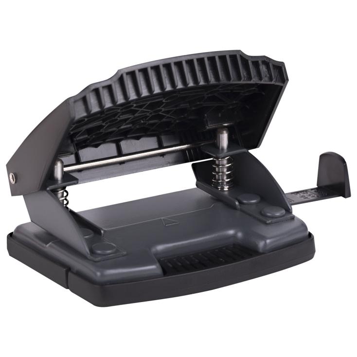 Дырокол BRAUBERG "SUPER", до 20 листов, черный — мощный настольный инструмент для аккуратного перфорационного крепления. Лезвия из закалённой стали проделывают отверстия в блоке до 20 листов формата А4 за один нажим. Эргономичная рукоять с противоскользящими вставками уменьшает усилие до 40%, обеспечивая комфорт при частом использовании. Корпус в строгом чёрном матовом цвете устойчивать к царапинам и легко впишется в любой офис. Съёмный контейнер для обрезков бумаги экономит время на уборку и сохраняет рабочую поверхность чистой. BRAUBERG "SUPER" — символ высокой производительности и надёжности. Перфорируйте мгновенно — добавьте дырокол в корзину!