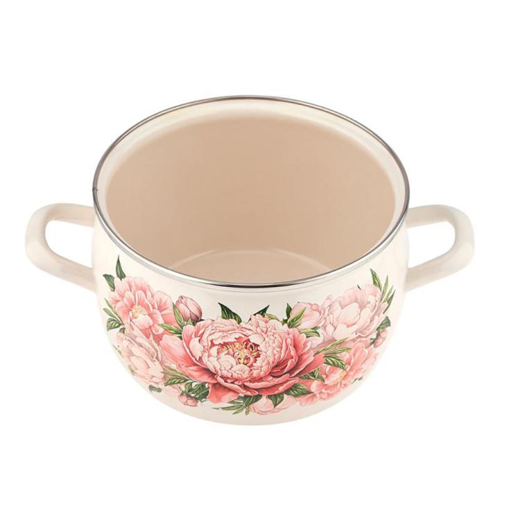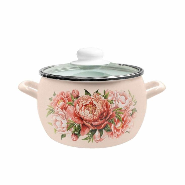 Вместительная эмалированная кастрюля объемом 5 литров из серии «Букет пионов» — идеальное решение для приготовления больших порций первых блюд, варки компотов, заготовок или тушения овощей. Белоснежная поверхность украшена нежным рисунком пионов, который придает посуде особую изысканность и праздничный вид. Эмалированное покрытие надежно защищает металл от коррозии, легко очищается и не впитывает запахи. Благодаря равномерному распределению тепла блюда готовятся быстрее и сохраняют свою сочность и аромат. Кастрюля рассчитана на использование в ежедневной готовке, но при этом выглядит настолько нарядно, что ее можно смело ставить на стол. Удобные ручки и широкие края обеспечивают комфорт и безопасность при эксплуатации. Яркий цветочный узор подарит хорошее настроение и создаст уютную атмосферу в доме. Эта кастрюля станет верным спутником в приготовлении семейных ужинов и праздничных застолий.