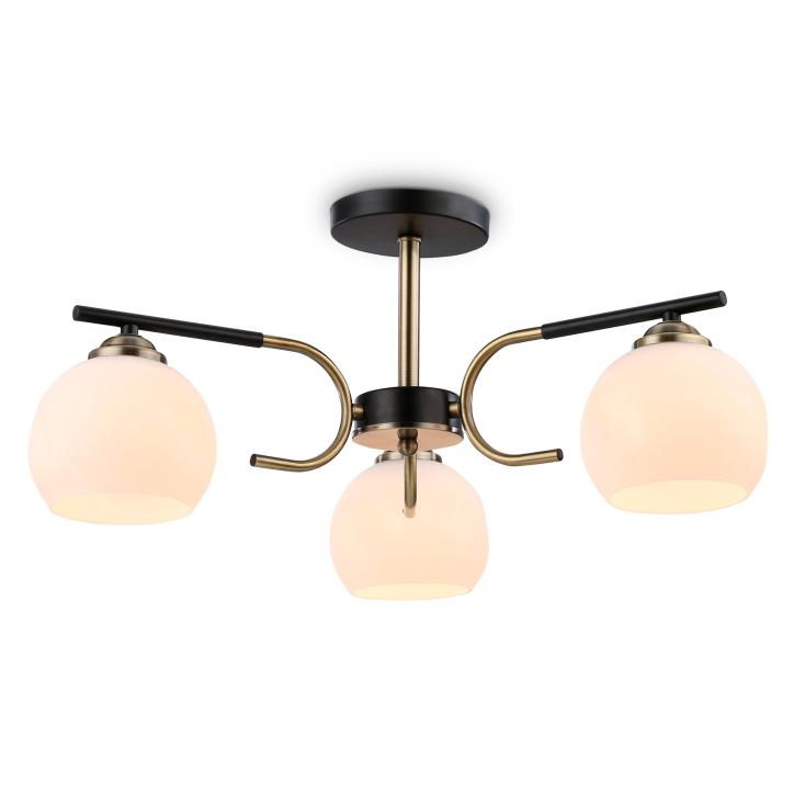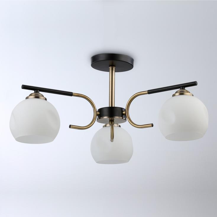 Эта потолочная люстра создана для тех, кто ценит уютную атмосферу и утонченные детали. Контраст черного корпуса и теплого блеска бронзы рождает ощущение благородства и стабильности, а белые матовые плафоны смягчают свет, делая его теплым и равномерным. Три источника освещения формируют достаточный поток света даже для просторных помещений, будь то гостиная, обеденная зона или спальня. Геометрия люстры выполнена в гармоничных пропорциях, а сочетание оттенков позволяет органично вписать модель в интерьеры как классического, так и современного направления. Светильник будет удачно смотреться в сочетании с деревянной мебелью, текстилем нейтральных тонов и элементами в стиле ретро. Атмосфера, которую создаёт эта модель, наполняет пространство теплом и спокойствием, делая дом местом отдыха и вдохновения. Монтаж не требует особых усилий, а конструкция прочна и надежна. Такая люстра станет центром внимания в интерьере и подчеркнет вкус хозяев. Купите ее, если хотите наполнить свой дом светом, уютом и атмосферой благородного стиля.