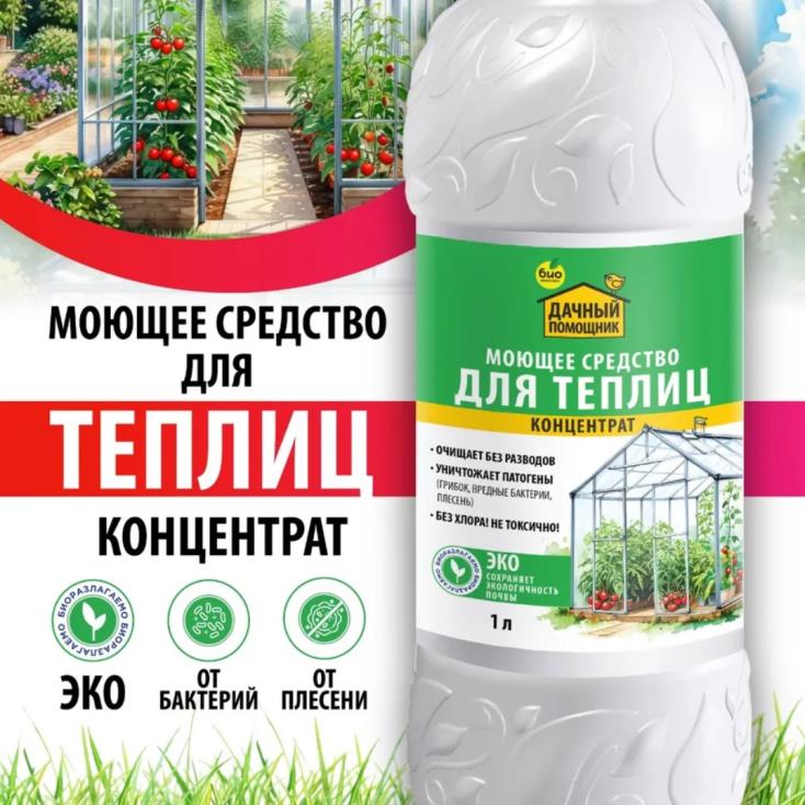 Средство моющее для теплиц «Дачный помощник» 1 л — это универсальный помощник для ухода за парниками и тепличными конструкциями, созданный специально для садоводов и огородников. Его формула разработана таким образом, чтобы эффективно удалять загрязнения, налёт, остатки почвы и органические следы с поверхностей, не повреждая при этом материал теплицы. Средство подходит для стеклянных, поликарбонатных и плёночных покрытий, возвращая им прозрачность и повышая светопропускную способность. Чистые стены и крыша теплицы позволяют растениям получать больше солнечного света, что напрямую влияет на их рост и урожайность. Продукт удобен в применении: достаточно развести его в воде и обработать поверхности с помощью губки, щётки или опрыскивателя. Он быстро растворяет загрязнения, легко смывается и не оставляет разводов. Важным преимуществом является безопасность: средство не содержит агрессивных компонентов, поэтому не вредит растениям и почве. Его можно использовать как весной при подготовке теплицы к сезону, так и осенью — для генеральной уборки после сбора урожая. «Дачный помощник» облегчает уход, экономит время и силы, помогая садоводу поддерживать чистоту и здоровье тепличного хозяйства. Это практичное решение для тех, кто ценит экологичность, эффективность и удобство в работе.