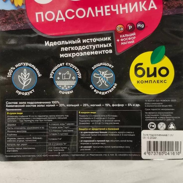 Универсальное удобрение «Био-комплекс Зола подсолнечника» 1 л — это экологически чистый продукт природного происхождения, который помогает эффективно восполнять запас питательных веществ в почве и способствует здоровому развитию растений. Зола подсолнечника богата калием, кальцием, фосфором и микроэлементами, необходимыми для формирования крепкой корневой системы, активного роста и обильного цветения. Такое удобрение снижает кислотность почвы, улучшает её структуру, повышает воздухо- и влагоёмкость. Оно подходит для широкого спектра культур: овощей, плодовых деревьев, ягодных кустарников, комнатных и декоративных растений. Использование «Био-комплекса Зола подсолнечника» способствует увеличению урожайности, укреплению иммунитета растений и повышению их устойчивости к болезням и неблагоприятным погодным условиям. Удобрение легко применять: его можно вносить как в сухом виде при перекопке, так и в жидком — в качестве раствора для полива или опрыскивания. Благодаря натуральному происхождению оно безопасно для почвы, растений и человека. «Био-комплекс Зола подсолнечника» — это надёжное средство для тех, кто ценит экологичность и хочет выращивать здоровые, крепкие и урожайные культуры.