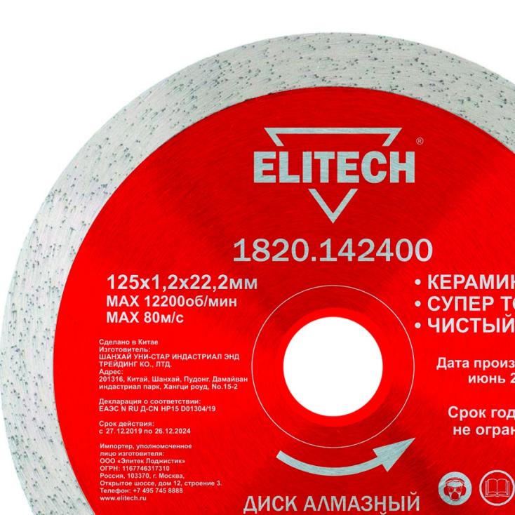 Диск алмазный сплошной 125х2х22,2 мм Elitech