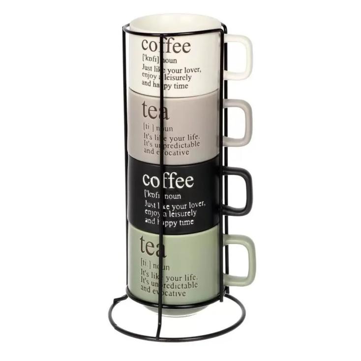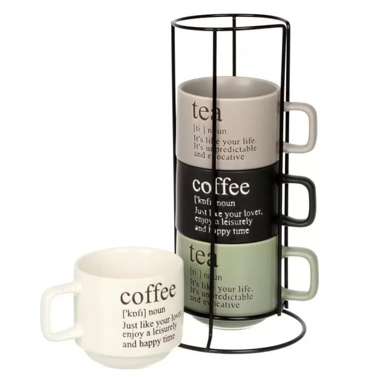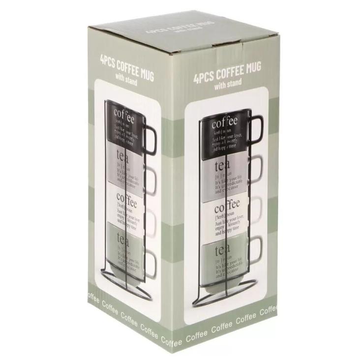 - Состав сервиза 4 кружки и подставка