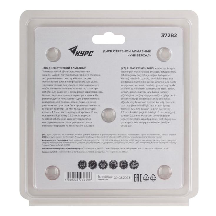 Диск алмазный универсальный 125х1,2х10х22,2 мм сухая и влажная резка Курс 37282