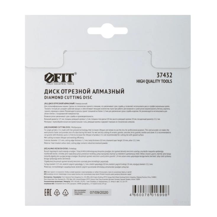 Диск алмазный универсальный 125х1,2х10х22,2 мм сухая и влажная резка Fit Профи 37432