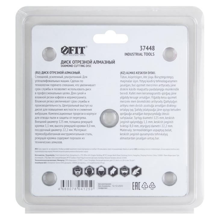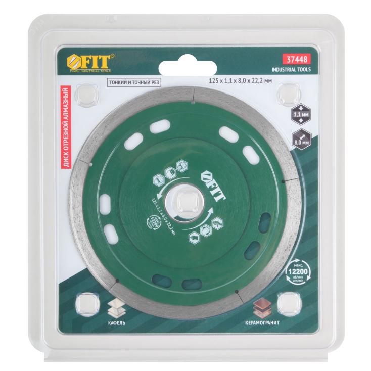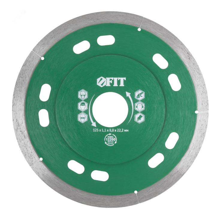 Диск алмазный сплошной для кафеля и керамогранита 125х1,1х8х22,2 мм Fit 37448