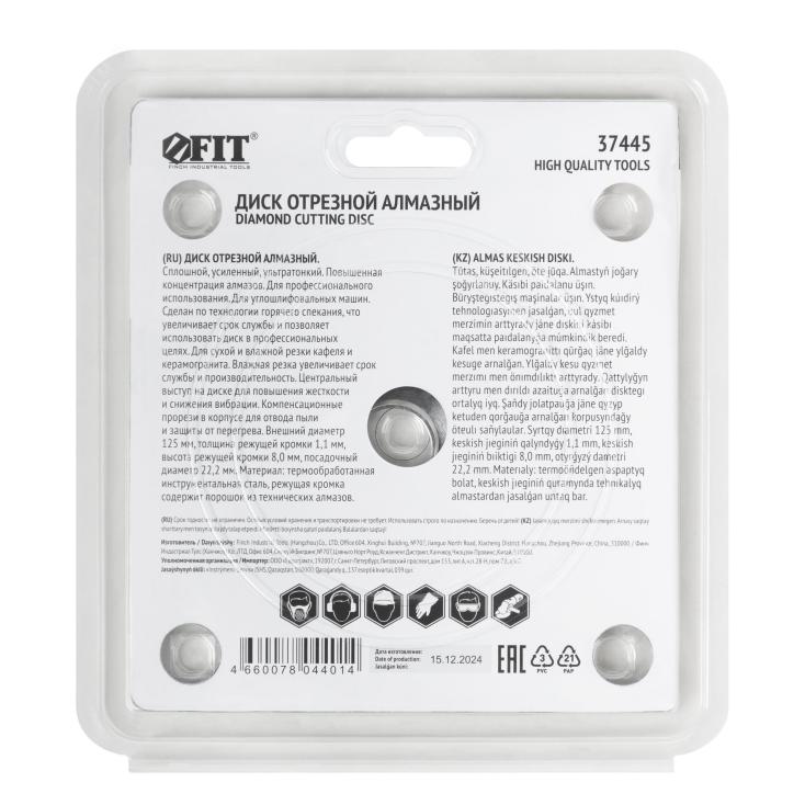Диск алмазный тонкий 125х1,1х8х22,2 мм Fit Профи 37445 – профессиональный инструмент для тех, кто ценит максимальную точность и аккуратность при работе с кафелем и керамогранитом. Его тонкая структура позволяет выполнять особенно деликатные работы, создавая ровный и чистый рез без сколов и неровностей. Усиленное алмазное покрытие гарантирует высокий ресурс и эффективность даже при регулярной эксплуатации. Диск подходит для сухой и влажной резки, сохраняя стабильные характеристики в любых условиях. Он идеально подойдёт для облицовочных и декоративных работ, где важно добиться идеального внешнего вида. Fit Профи 37445 совместим с большинством углошлифовальных машин, отличается надёжностью и простотой в использовании. Модель используется как в профессиональном строительстве, так и в быту, позволяя добиваться профессионального результата при отделке стен, полов и фасадов. Этот диск – выбор мастеров, которые ценят точность, долговечность и безупречный результат в работе.