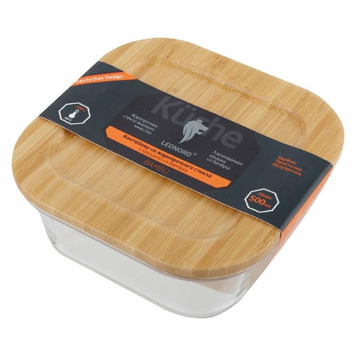 Контейнер для продуктов Leonord Bambu из боросиликатного стекла 500 мл