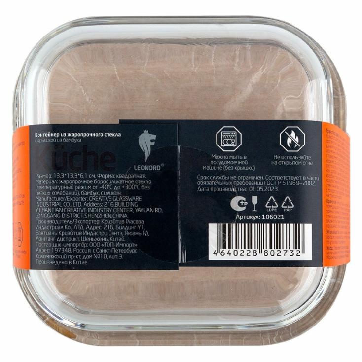 Контейнер для продуктов Leonord Bambu из боросиликатного стекла 500 мл — это универсальный аксессуар для кухни, сочетающий надежность и современный дизайн. Изготовленный из прочного боросиликатного стекла, он устойчив к механическим повреждениям и перепадам температуры, не впитывает запахи и легко очищается. Натуральная бамбуковая крышка с уплотнителем обеспечивает герметичность, позволяя дольше сохранять свежесть продуктов и предотвращая проливание. Объем 500 мл идеально подходит для хранения готовых блюд, салатов, гарниров или десертов, а также для удобной транспортировки обедов на работу или учебу. Контейнер можно ставить в холодильник, разогревать в микроволновке и мыть в посудомоечной машине, что делает его максимально удобным в повседневном использовании. Современное сочетание прозрачного стекла и натурального дерева создаёт стильный акцент в интерьере кухни и подчеркивает заботу о здоровье и экологии. Этот контейнер станет незаменимым помощником для тех, кто ценит порядок, свежесть и эстетику в хранении продуктов.