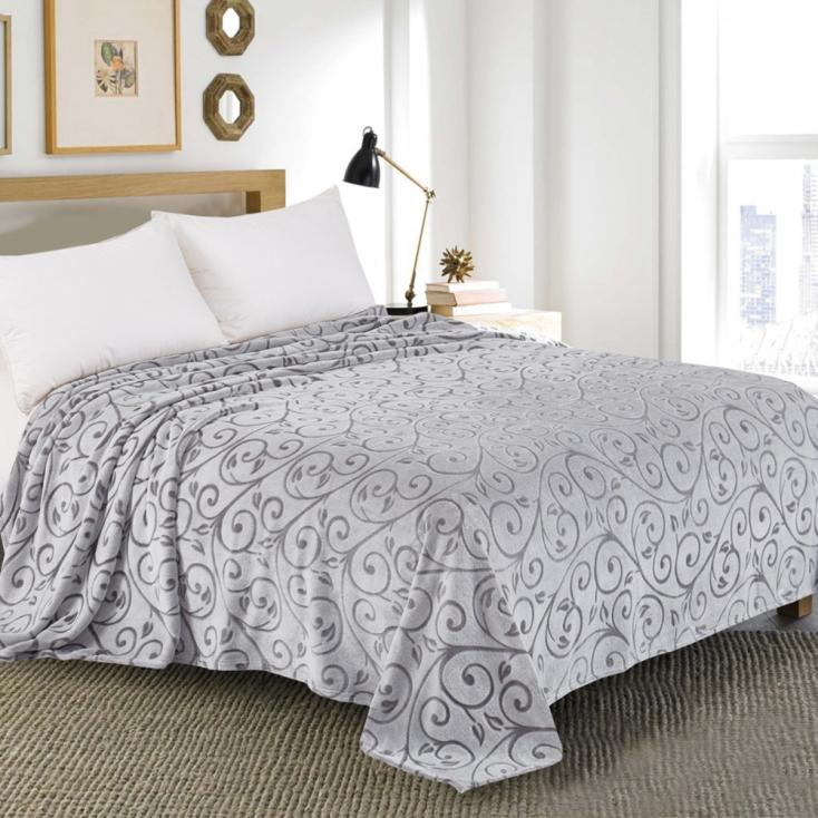 Плед флисовый гладкокрашеный с выстриженным узором на поверхности Вензель 180x200 см серый вид 55