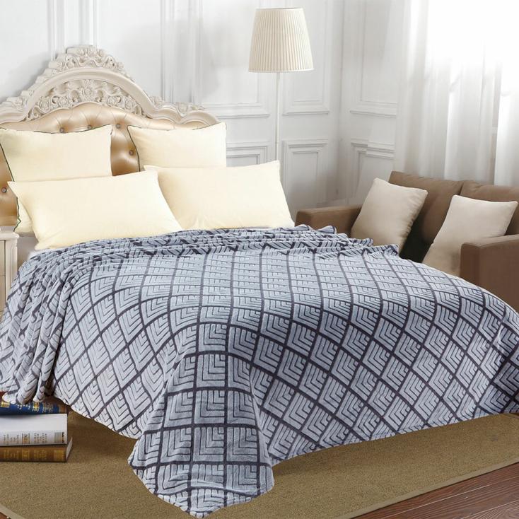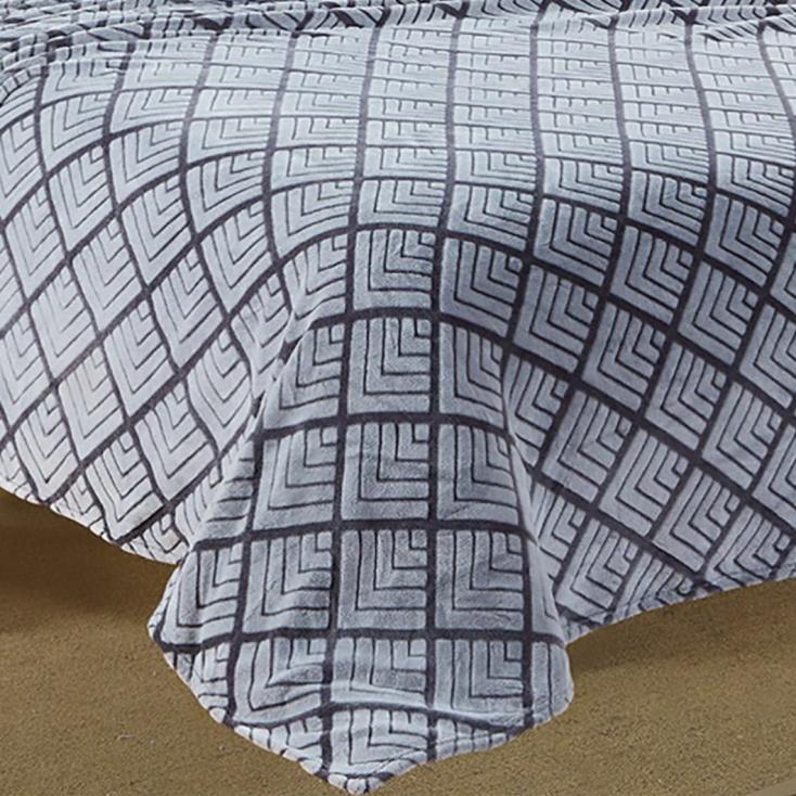 Плед флисовый гладкокрашеный с выстриженным узором на поверхности Квадраты 180x200 см серый вид 79
